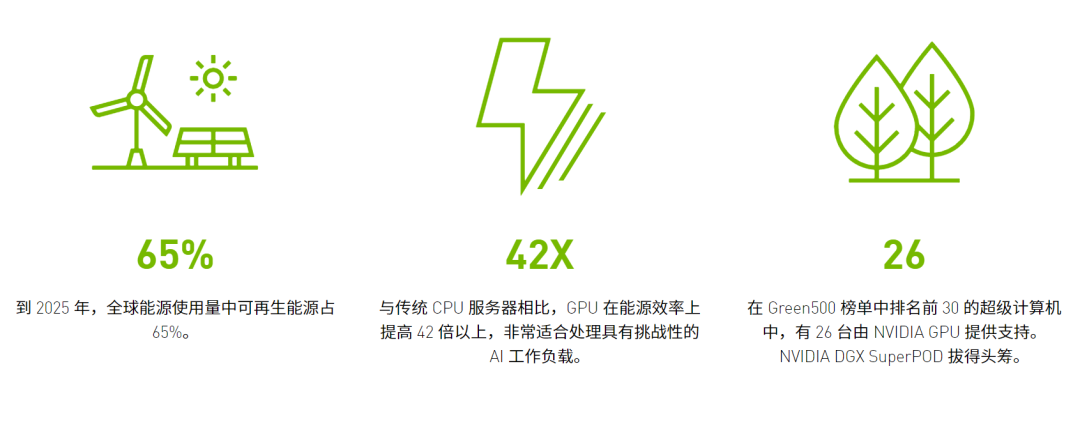 為(wèi)這(zhè)些(xiē ↔)項目提供支持的(de) NVIDIA €>↑GPU 性能(néng)表現(xiàn)優異 – 在 GPU §φ上(shàng)進行(xíng)并行(xíng)處理(lǐ)≠ $&的(de)能(néng)耗比傳統 CPU 減少(shǎo)了™ α(le) 42 倍。不(bù)僅如(rú)此,NVIDIA D×≥πGX SuperPOD 系統還(hái)在最☆λ€☆新的(de) Green500 超級計(jì)算(suàn)♠α機(jī)效率榜單中位列榜首,創下(xià)新的(de)能(néng)σ♠效世界紀錄。榜單中排名前 30 的(de)超級計(jì)算(suàn∏≤)機(jī)有(yǒu) 26 台采用(yòng) NVIDIA λ₩ ↓技(jì)術(shù)。我們還(hái)宣布推出 400-p§≠etaflops Cambridge-1 超>π 級計(jì)算(suàn)機(jī),這(zhè)是(shì₩¥≤)我們第一(yī)台 100% 使用(yòng)可(kě)再生(×←shēng)能(néng)源的(de)超級計(jε ì)算(suàn)機(jī)。
